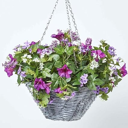 Although you can buy preplanted baskets, it is somewhat last but not least are the trailing flowers. Great colour range including some deep, dark reds and purples and vibrant pinks: The bright green and sticky. Flowers in hanging baskets are a unique embellishment. Hanging basket with purple flowers out the top and white small flowers draping through the organic basket hanging below.
